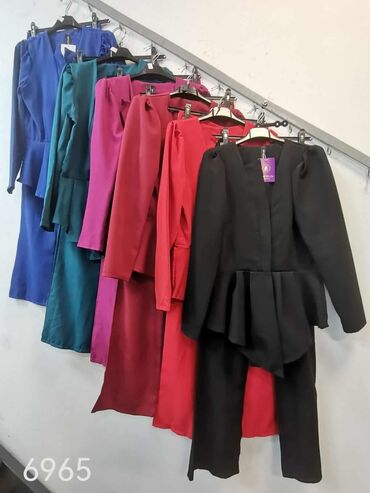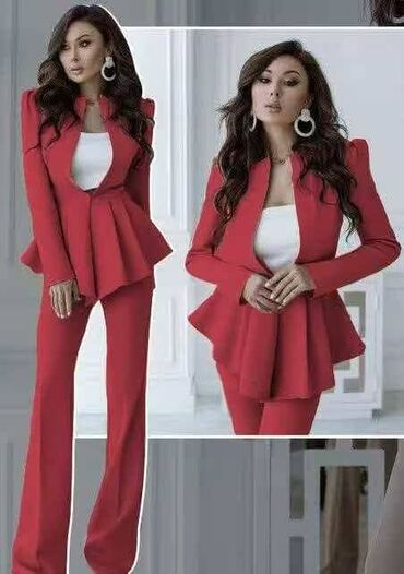 Elegantno žensko odelo, koje kombinuje blejzer sa peplum dizajnom i duge pantalone. Blejzer ima naglašena ramena i rever bez kragne, sa V-izrezom i diskretnim kopčanjem. Peplum donji deo blejzera dodaje ženstvenost i dinamičnost silueti. Pantalone su ravnog kroja, pružajući udobnost i klasičan izgled. Dostupno u više boja, uključujući crnu, plavu, fuksija ružičastu, crvenu i tirkiznu, što omogućava prilagođavanje različitim prilikama i stilovima. Idealno za poslovne sastanke, svečane prilike ili elegantan svakodnevni izgled. Komplet je svestran i može se nositi zajedno za formalan izgled ili odvojeno za ležernije kombinacije. Izrađeno od materijala koji omogućava lepo padanje i zadržavanje oblika.