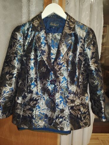 Elegantno odelo pogodno za svečane prilike, večernje događaje i posebne povode; žakard pruža strukturu i postojan oblik. Veličina na etiketi: 44. Marke: Luis Rangel. Boje i dezen daju efektan, sofisticiran izgled.