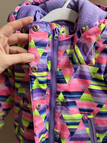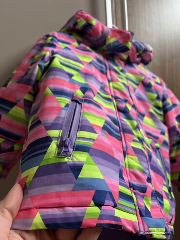 Zimske i kišne jakne + skijaške pantalone – komplet za decu/juniore - Komplet 1: Skijaška jakna sa kapuljačom, tamna osnova sa geometrijskim printom (crveno/žuto/sivo), topla postava, dva bočna ra...
