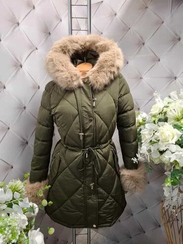 Dužina do sredine butine, idealna za hladne zimske dane. Elegantna i funkcionalna, lako se kombinuje uz svakodnevne i chic outfite. Boja: maslinasto zelena. Detalji: bež krzno.