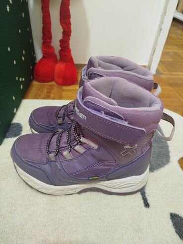 Dečje zimske vodootporne cipele gaziste 18,5cm Kratko nosene,par puta. - Brend: Coperinner (logo na jeziku). - Boja: tamnosiva sa limeta‑zelenim detaljima i svetlozelenim đonom. - Vodoodb...