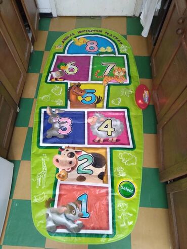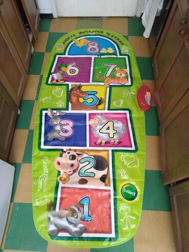 O trošku kupcaPokupiti na licu mestaZippy mat Animal hopscotch play mat,duz.180,sir.max/min.83/60 cm.2 moda rada,pritiskom broja cuje se 8 glasova zivotinja sa slika i 8 melodija i svetli led dioda.Baterije: 3 x 1.5V “AA”(Nisu ukljucene) Uzrast 12 meseci+