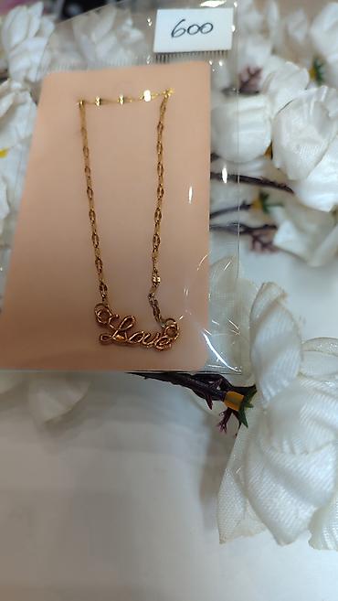 Zlatno-tonirana ogrlica sa priveskom “Love”.