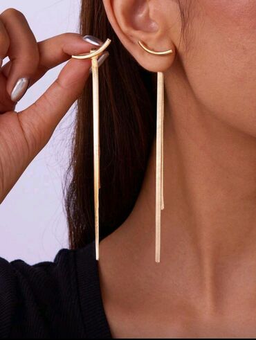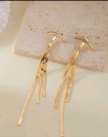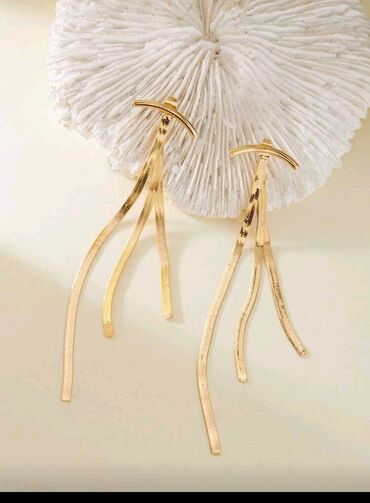 Zlatno-tonirane duge minđuše sa visećim resicama