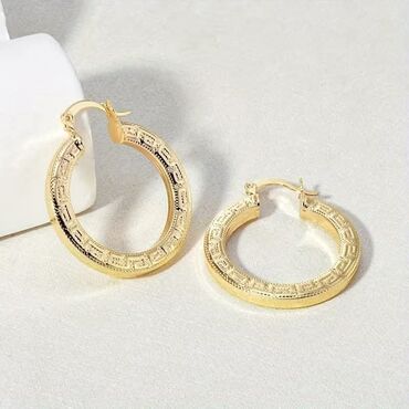 Zlatno obojene okrugle minđuše – geometrijski reljef Od Nerđajućeg Hiruškog Čelika - Tip: minđuše alke - Materijal: bakar (copper) sa zlatnom završnom obradom - Prečnik alke: 3 cm (1.18 inča) - Šir...