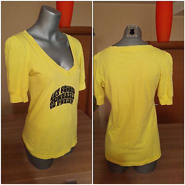 Žuta majica kratkih rukava marke Decibel, sa V-izrezom i grafičkim
