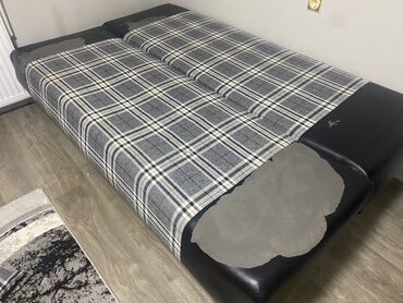 Napomena: vidljiva oštećenja na eko-koži na bočnim i krajnjim delovima; tkanina sa kariranim dezenom čvrsta i ravna.