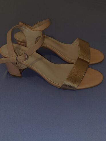 - Potpetica: niska, stabilna blok potpetica (približno 4–5 cm)