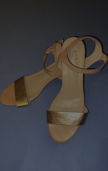 - Boja: bež/nude baza sa zlatnim sjajnim remenom preko prstiju