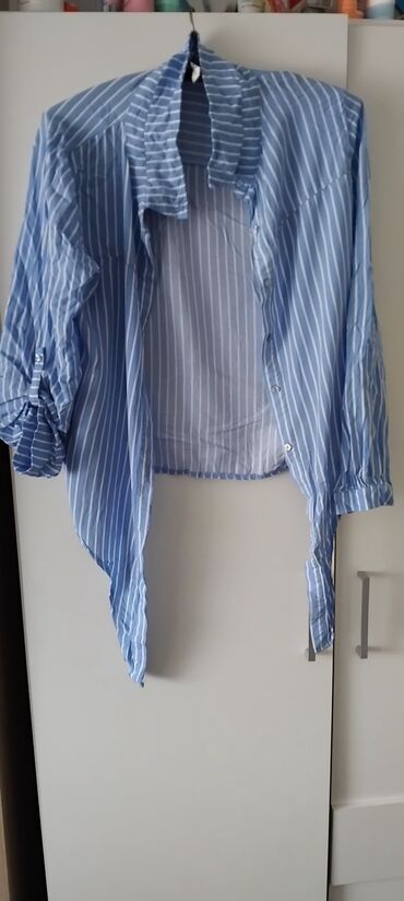 H&M ženska košulja na pruge - Veličina: M - Dužina: 55 cm - Poluobim: 42–52 cm (rastegljivo) - Plavo‑bele uske pruge - Kratki rukavi sa naborom i dugmić detaljem - Klasičan kragnu, V-izrez sa nabor...1 900 RSD