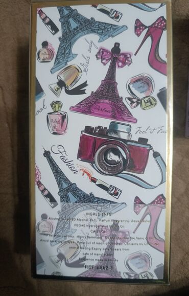 - Pakovanje: dekorativna kutija sa motivima modne tematike i Ajfelove kule