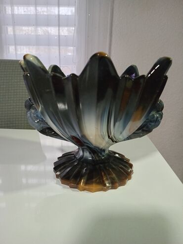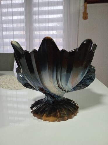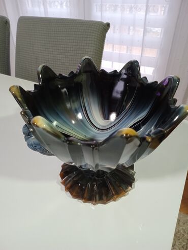 Dekorativna činija na postolju od stakla – imitacija ahata/mramora art deco