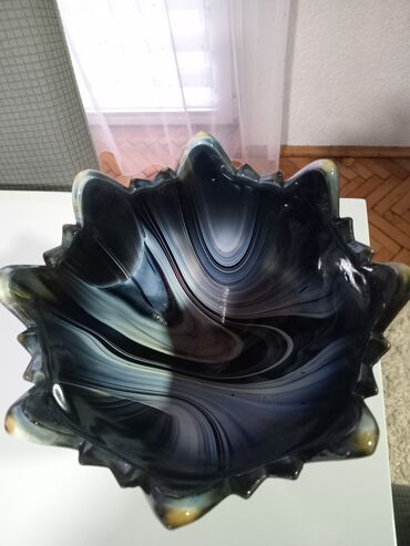 - Materijal: liveno obojeno staklo sa “swirl” šarama u nijansama crne, tamnoplave, sive i braon, koje podsećaju na ahat.