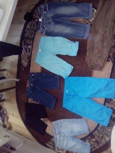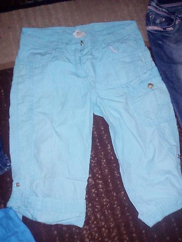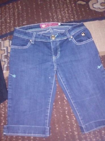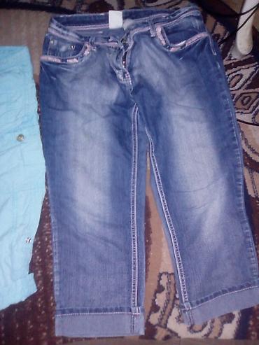 Komplet - Materijal: klasičan denim sa blagim strukturnim osećajem - Kroj: ravne nogavice, srednje dužine, visoki struk - Detalji: pocepani/ripped efekti na prednjem delu, neravni/izrezani rub no...
