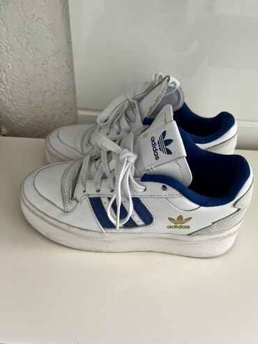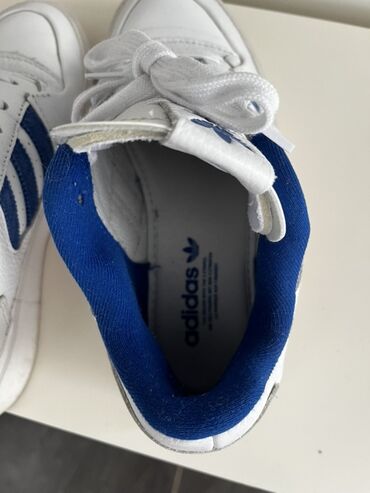 KožaUniseks Adidas patike Forum Low, bele boje sa plavim detaljima. Patike su dizajnirane sa prepoznatljivim Adidas "tri pruge" sa strane u plavoj boji i zlatnim Adidas logotipom. Unutrašnjost patike je takođe u plavoj boji, pružajući udobnost i stil. Idealne su za svakodnevno nošenje, nudeći klasičan sportski izgled.