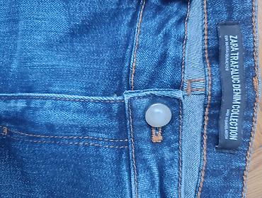 Ženske jeans pantalone Vel L – tamnoplave, 7/8 dužina - Kroj: ravan, srednji struk - Dužina: 7/8 (do iznad članka) - Nogavice: ravne sa metalnim drikerima/kopčama pri dnu (sa strane) - Džepovi: kl...