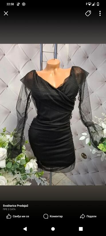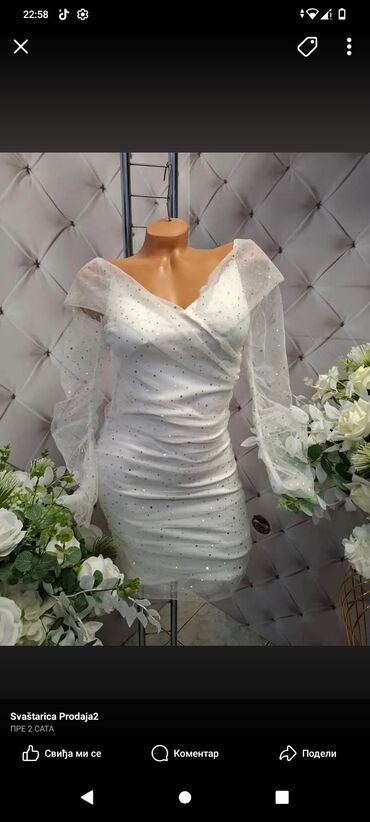 Idealno za proslave, večernje izlaske i svečane prilike. Upečatljiv, ali sofisticiran sjaj i ženstvena linija. Cena prikazana na slici: 2.800,00.