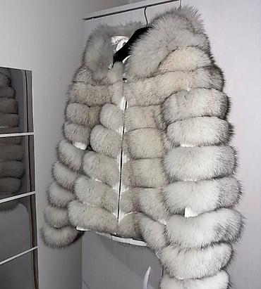 Luksuzna ženska bunda u srebrno-sivoj nijansi, kratkog kroja. Model je