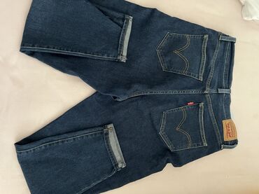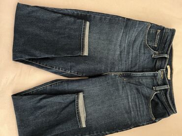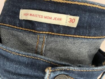 Ženske farmerke sa visokim strukom od tamnog teksasa, model "Mom Jean". Karakteriše ih klasičan kroj sa pet džepova, ravne nogavice koje se mogu podvrnuti i udoban visok struk. Pogodne su za svakodnevno nošenje, pružajući opušten i moderan izgled. Izrađene su od izdržljivog materijala, idealne za različite kombinacije.
