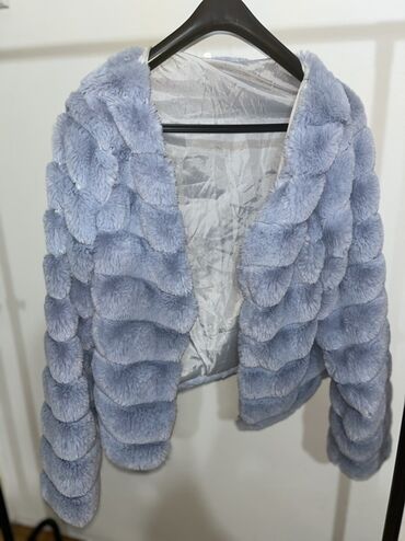Bunda tamno plava,jaca boja uzivo nego na slikama.Zvono rukavi,sa postavom.Meko i prelepo krzno ne izgleda fejk.Kvalitetna i topla.Oznacena sa 5XL ali je manja.Duzina 100,duzina rukava 66,obim grud...