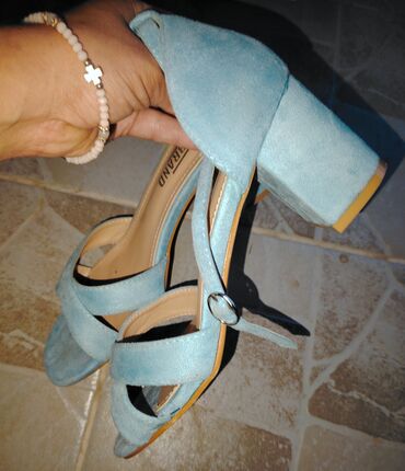Ženske sandale Marco Tozzi, model “Feel Me” - Veličina: 38 (oznaka na ulošku) - Boja: plava/teal nijansa - Gornjište: antilop izgled sa ukrasnim kristalima/stenenim aplikacijama na prednjem remenu...