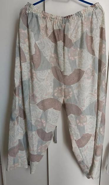 - Donji deo: ravne pantalone sa elastičnim pojasom, komotne nogavice