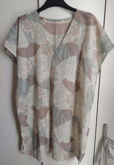 - Gornji deo: široka tunika/majica sa kratkim rukavima i V izrezom, opušten kroj za udobnost i lako oblačenje