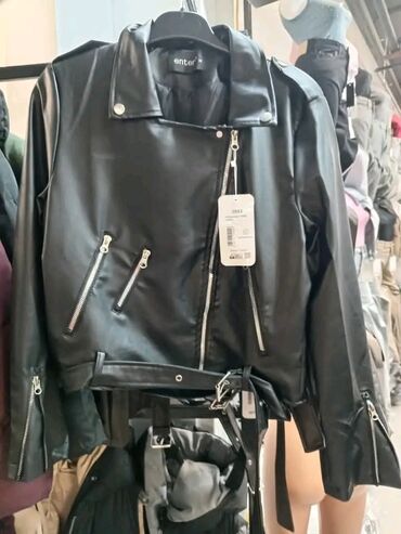 Bershka ženske bajkerske jakne – model kratke dužine (cropped), od veštačke kože. - Boje: crna i bela - Dizajn: klasični biker kroj sa reverima i asimetričnim prednjim rajsferšlusom - Džepovi: pre...