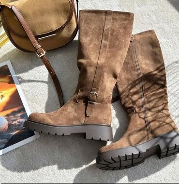 Turkiz plave ženske čizme od velura (suede), model sa naborima. Kao nove - Boja: intenzivna tirkizna - Materijal: meki velur/spolja; glatki đon - Vrh: špic - Peta: tanka „kitten heel”, približno 5...2 000 RSD