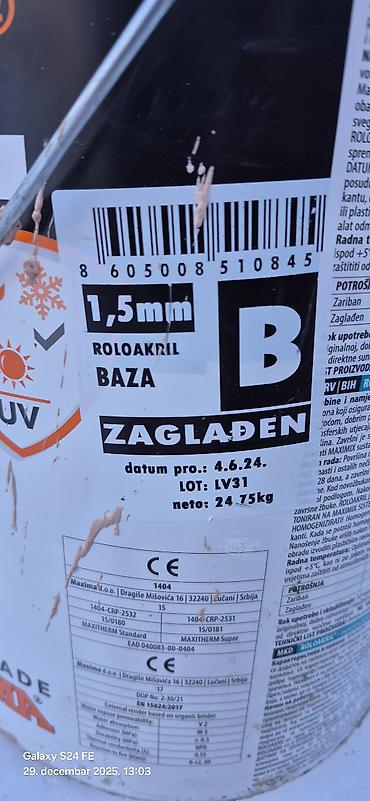- Preporučena podloga/primer: ROLOAKRIL osnovni premaz; obavezno homogenizovati pre upotrebe.