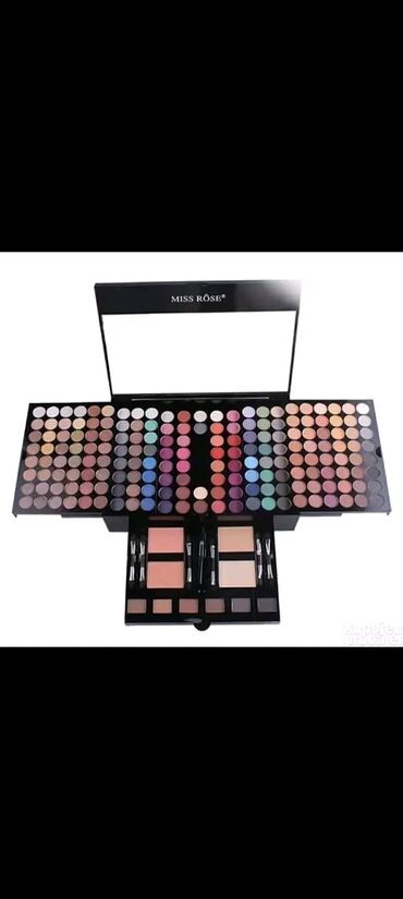 Palete senki za oči – višebojne, sa mat i šimer/zlatnim glitter nijansama - Set paleta u kompaktnim rozo‑ljubičastim kutijicama sa providnim poklopcem. - Svaka paleta sadrži više traka/češljanih p...