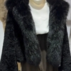 Ženska zimska jakna/kaput od crne kože sa krznom - Model: duži kaput, A-kroja, sa zatvaranjem na centralni rajsferšlus - Materijal: spolja glatka crna koža/velur izgled; unutrašnjost i ivice oblož...