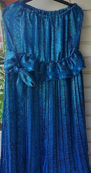Idealna za letnje svečanosti, večernje izlaske ili dnevne kombinacije uz sandale ili štikle. Kombinujte sa tankim pojasom ili jednostavnim nakitom za elegantan izgled.Dimenzije obim struka 40 obim kuka 44 duzina 95 rasprodaja zato su te cene pogledajte ostale moje oglase
