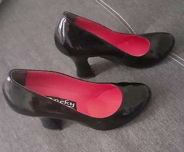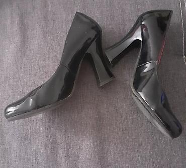 Elegantan i prepoznatljiv kontrast crne lakirane površine i roze unutrašnjosti daje im moderan, ženstven izgled, dok oblik štikle pruža sigurnost i stabilnost pri hodu.br 37 gaziste 24 rasprodaja zato su te cene pogledajte ostale moje oglase.