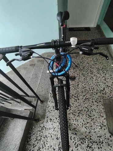 - Oprema: bela prednja LED svetiljka na volanu, zvono, bočica za vodu/ držač predviđen na ramu, postolje (nosač) za parkiranje, zaštitna sajla/lanac plave boje