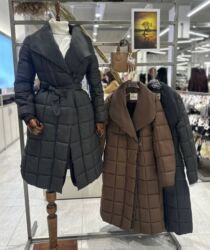 - Modeli sa visokim okovratnikom ili širokim reverima, neki sa krznenim detaljima oko kragne i ivica