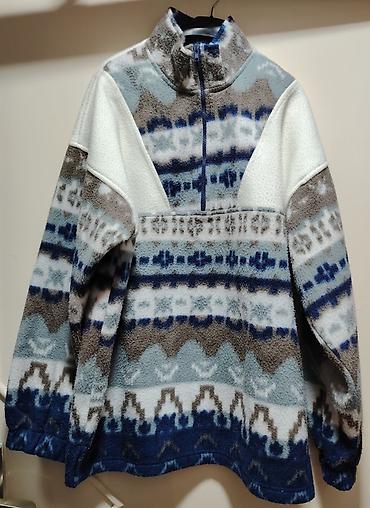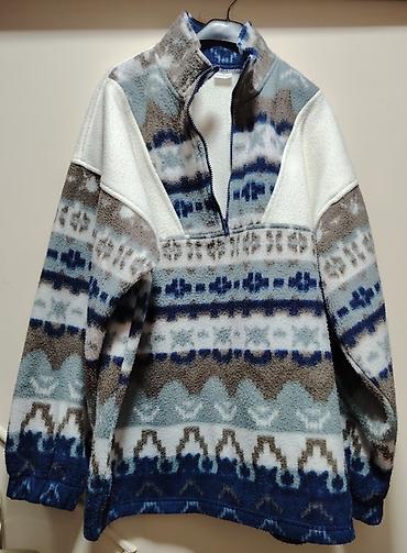 Dukserica/polar džemper sa pola rajsferšlusom. Deblji, mekan i topao materijal sa visokim kragnom. Šara u zimskom/etno stilu u tonovima plave, bele, sive i bež. Kontrastni paneli u belom flisu na ramenima i gornjem delu, dugi rukavi i ravni porub. Praktičan polu-zip napred olakšava oblačenje i provetravanje. Idealno za hladnije dane, šetnje, planinarenje ili svakodnevno nošenje. Uniseks kroj, komotan i slojevit.dimenzije 64 sirina ramena 67 duzina 77 rasprodaja zato su te cene pogledajte ostale moje oglase
