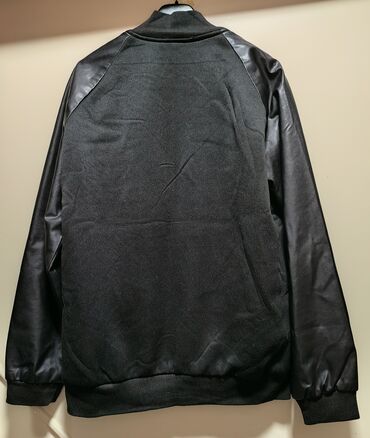 Crna varsity/bomber jakna sa kombinacijom materijala.