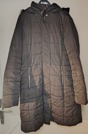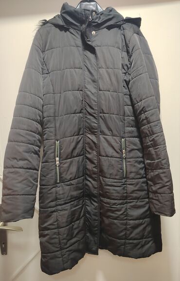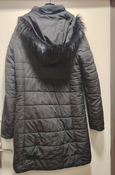 Ženska zimska jakna – crna, prošivena, dužine do iznad kolena. -
