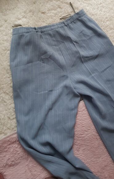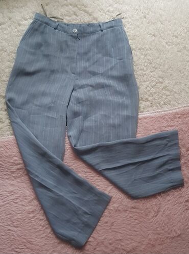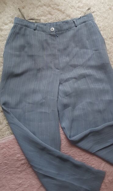 Ženske elegantne pantalone u svetlosivoj boji sa diskretnim vertikalnim prugama. Klasičan kroj sa ravnim nogavicama. Prednji deo: kopčanje na dugme i rajsferšlus, kaišni držači i bočni džepovi. Zadnji deo: elastični pojas za udobnije pristajanje. Lagani, lepršavi materijal prijatan za svakodnevno nošenje ili poslovne kombinacije. Neutralna nijansa lako se uklapa uz košulje, blejzere i majice. Dimenzije obim struka 39 obim kuka 53 duzina 94 rasprodaja zato su te cene pogledajte ostale moje oglase
