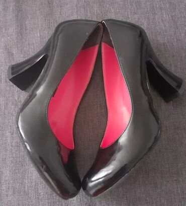O trošku kupcaCrne lakovane ženske salonke sa blok potpeticom.