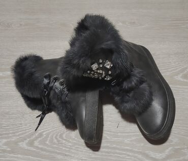 Eko kožaŽenske zimske čizme – crne, sa krznom i ukrasnim kamenčićima.