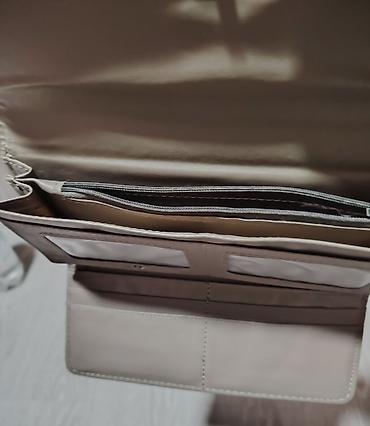 - Boja: kombinacija svetlo bež (poklopac) i karamel braon (telo) sa diskretnim metalnim kopčanjem na preklop