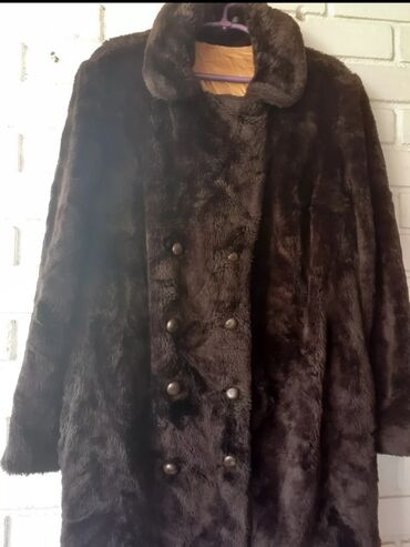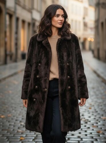 Ženski bunda od veštačkog krzna, tamno braon boje.