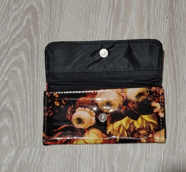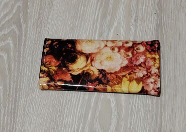 - Dizajn: sjajna spoljašnjost sa bogatim cvetnim motivom u toplim tonovima (žuta, ružičasta, bordo, crna). Klapna se zatvara metalnim magnetnim drukerom.