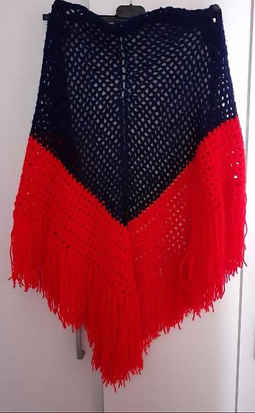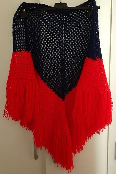 - Model: trouglasti pončo/šal sa dubokim V izrezom na leđima