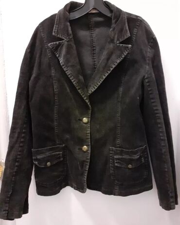 Ženski sako od štofa (kord, rebrasti somot) – brend: Hashun, veličina: XL. - Boja: bež/peskano. - Klasičan kroj sa rever kragnom. - Kopčanje na dva dugmeta. - Džepovi sa preklopom (dva prednja). -...