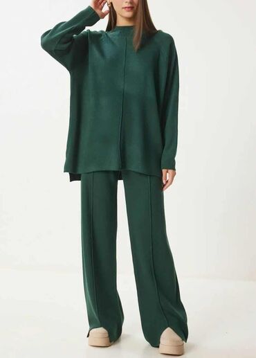 Damski komplet – crop jakna + široke pantalone - Moderan dvodelni set od mekog, prijatnog materijala sa blagim padom. - Gornji deo: kraća jakna sa rajsferšlusom po sredini, visokim okovratnikom i ...