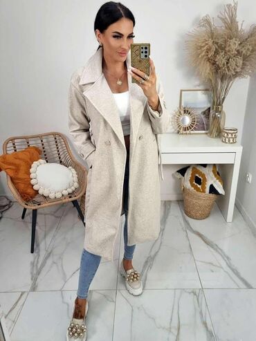 Beลพ ลพenska lagana jakna/kaput - Klasiฤan kroj do ispod kukova, idealan za proleฤe/jesen - Materijal: glatka, lagana tkanina prijatna na dodir - Kopฤanje na dugmad sprijeda - Dva velika prednja dลพe...