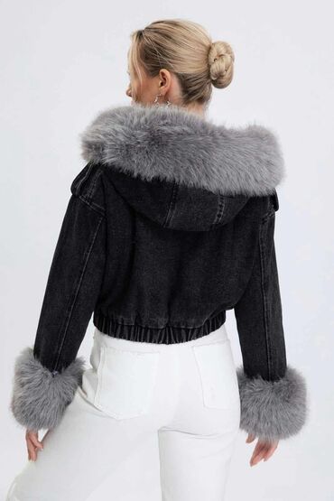 Naslov: Uni veličina — 9600 din Opis: Elegantna ženska jakna u smeđoj boji sa bogatim krznom u kontrastnoj zlatno-bež nijansi. Model sa širokim reverima od krzna, krznenim manžetnama i krznenim ru...